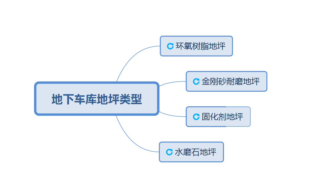 地下車庫施工時一般會用到環氧樹脂地坪、金剛砂耐磨地坪、固化劑地坪、水磨石地坪等類型的地坪,接下來小編就針對每一類地坪為大家重點的介紹下!
