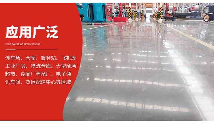 在受到較強外部壓力時容易導致地坪損壞的缺點的一種地坪,固化劑地坪硬度強、耐磨、耐沖擊、密封性能好、防水、防油、防起灰起砂、清潔成本低且壽命長,無論是作為新地下停車場的地坪,還是舊停車場地坪的二次改造都有很好的效果。