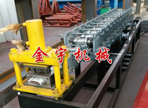卷簾門成型設備主要由放料機、進料導入平臺、成型主機、成型剪切裝置、液壓站、電腦控制系統等幾部分組成并配合鎖邊機使用。