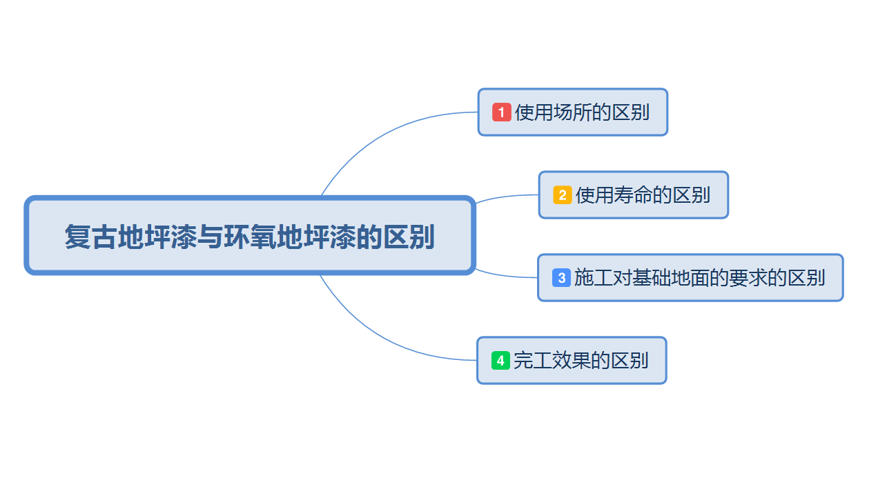 復(fù)古地坪漆與環(huán)氧地坪漆之間是存在著很多的差別的,比如使用場(chǎng)所、使用說明、對(duì)基礎(chǔ)地面的要求以及完工之后的一些效果,接下來小編就帶著大家一起看一看“復(fù)古地坪漆與環(huán)氧地坪漆的區(qū)別”。 復(fù)古地坪