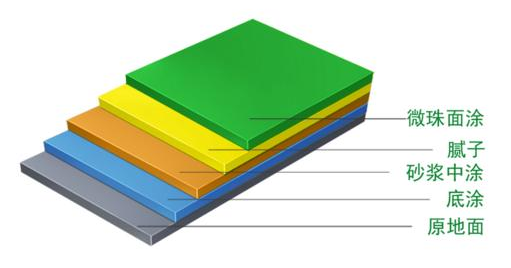 微珠環氧地坪漆,主要成份為二氧化硅和氧化鋁,添加陶瓷微珠填充料,其硬度達到莫氏7度,從而改善地坪的耐磨損性,由于陶瓷微珠形成大量微細“凹凸表面”使其有非常好的防滑效果。